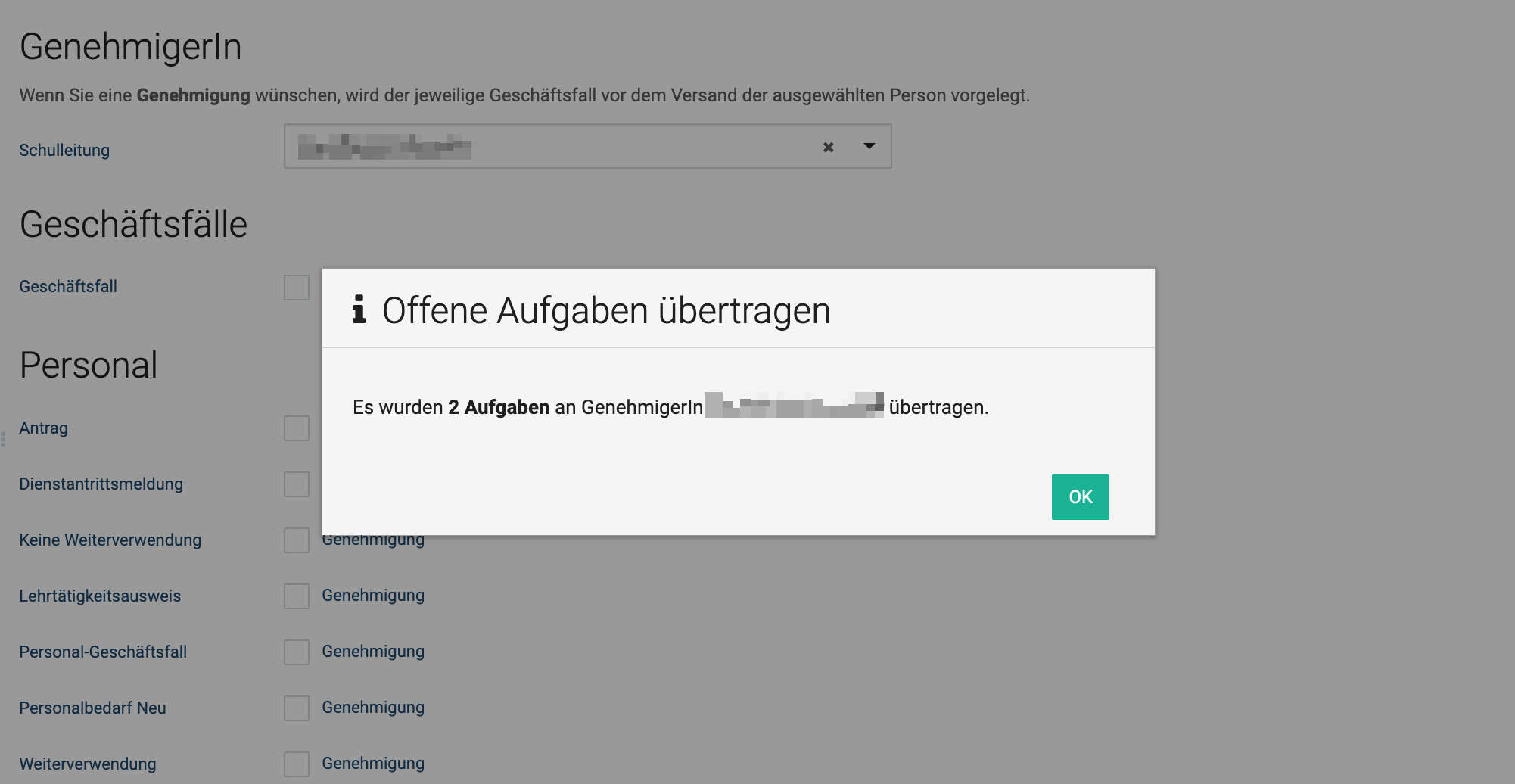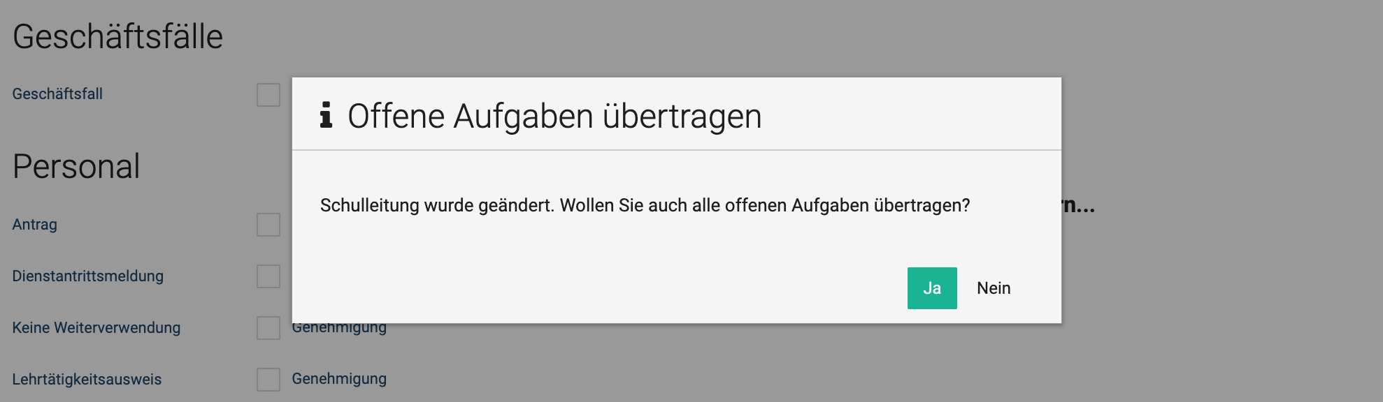 Des Weiteren können Sie unter "Personal" die Aufgaben der vorherigen Schulleiter/Schulleiterinnen direkt übernehmen.